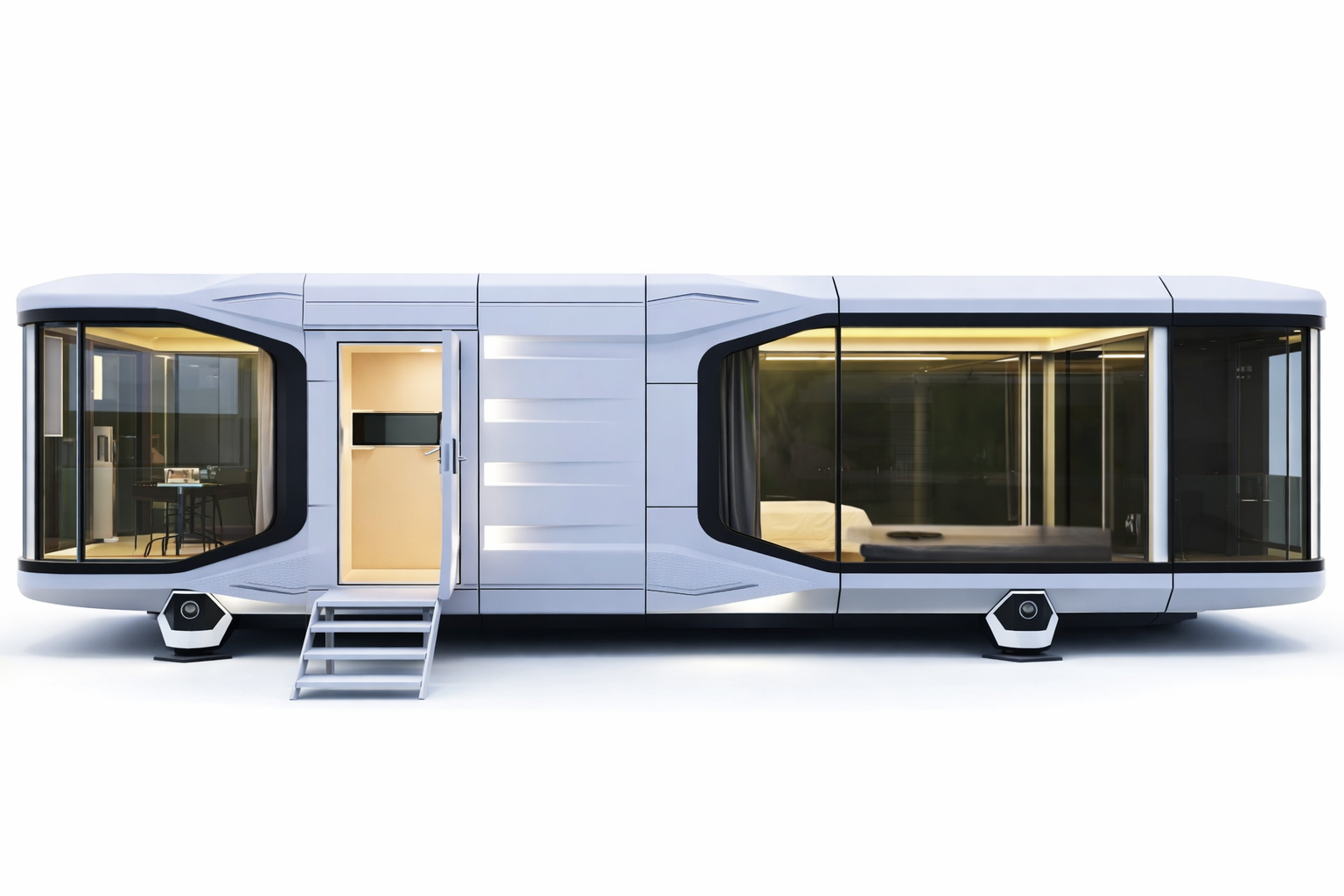 Cápsulas espaciales modulares que redefinen el concepto de vivienda. Tecnología inteligente y diseño contemporáneo.